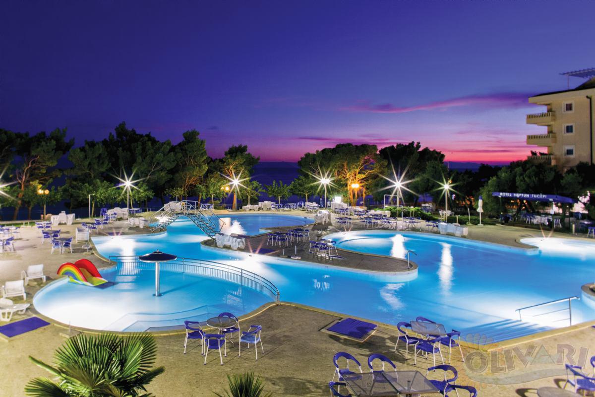 Hotel Bluesun Neptun – All inclusive preuređen je za ljetnu sezonu 2014. te u ponudi ima all inclusive uslugu, razne aktivnosti i veliki vanjski bazen. Smješten je među nasadima maslina i borovima koji se spajaju s Jadranskim morem i dugim šljunčanim plažama. Gostima je dostupan besplatni WiFi.